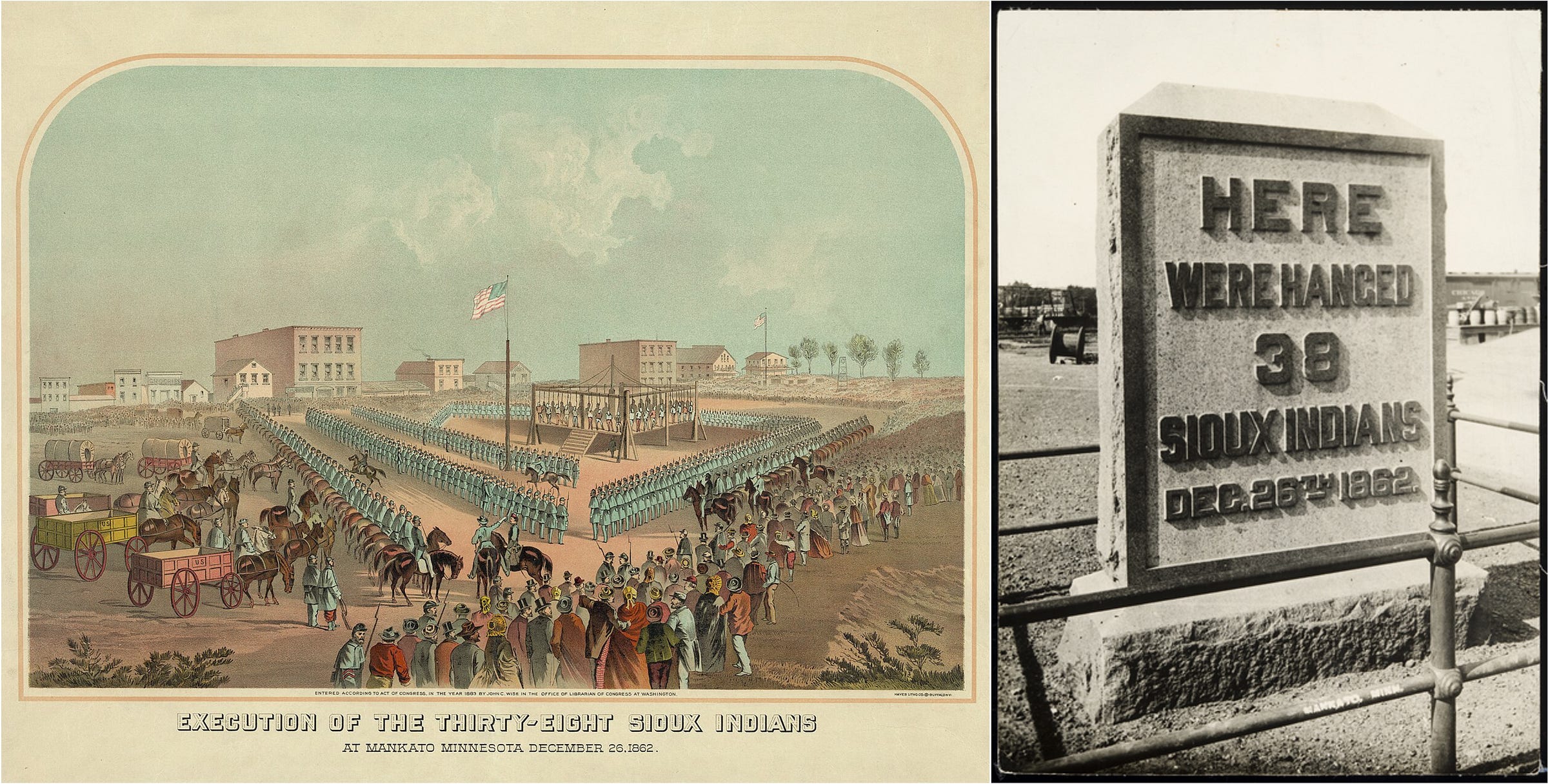 On December 26, 1862, during the Civil War, President Abraham Lincoln authorized the hanging of 38 Dakota men in Mankato, Minnesota. The execution, staged as public theater, was not a solemn judicial act. A special scaffold was built, martial law was declared, and an estimated 4,000 spectators witnessed the largest mass execution in U.S. history.1